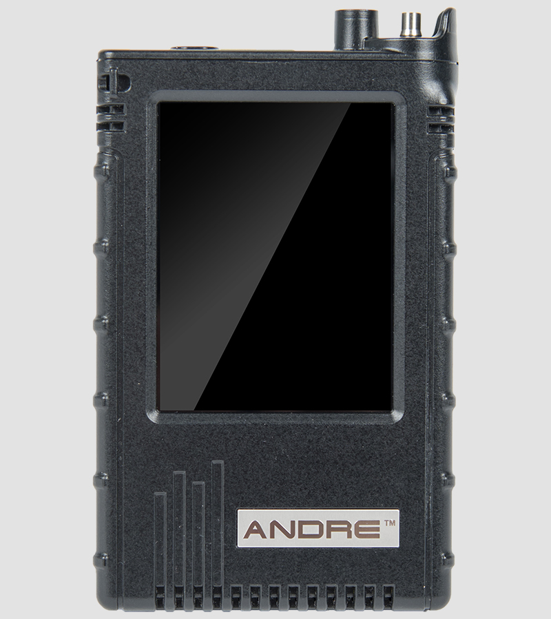 The ANDRE detects signal activity in its vicinity and displays changes in signal strength over time, allowing users to quickly locate the source of transmissions. The ANDRE’s frequency counter provides quick identification of the signal frequency and outputs additional information to an automatic signal list generator.