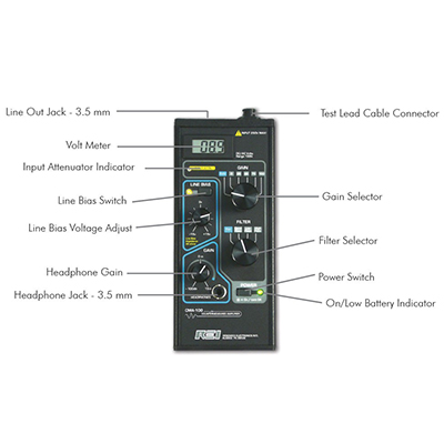 contains a built-in AC/DC digital voltmeter, select-able audio filters, and a wide dynamic range.