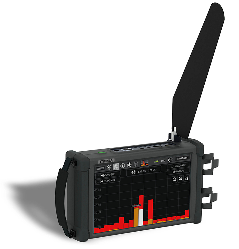 Cookeville, TN, July 10, 2020 -- Radio Frequency (RF) applications demand agile, portable, handheld spectrum analyzers to measure the power and frequency of known and unknown transmissions, often throughout different locations. REI has developed a portable spectrum analyzer that delivers precision, high performance, and versatility for assessing RF energy in a variety of environments. The new MESA™ - Mobility Enhanced Spectrum Analyzer is a handheld RF receiver that detects known, unknown, illegal, disruptive, or interfering transmissions throughout wide frequency spans up to 6GHz (12GHz with Down Converter antenna).