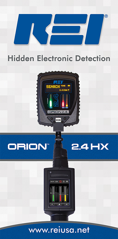 The ORION 2.4 Non-Linear Junction Detector detects electronic components in walls, floors, ceilings, fixtures, furniture, and containers. The ORION NLJD is used to detect and locate hidden cameras, microphones, and other electronic devices even if no power supply or RF signal is emitted.